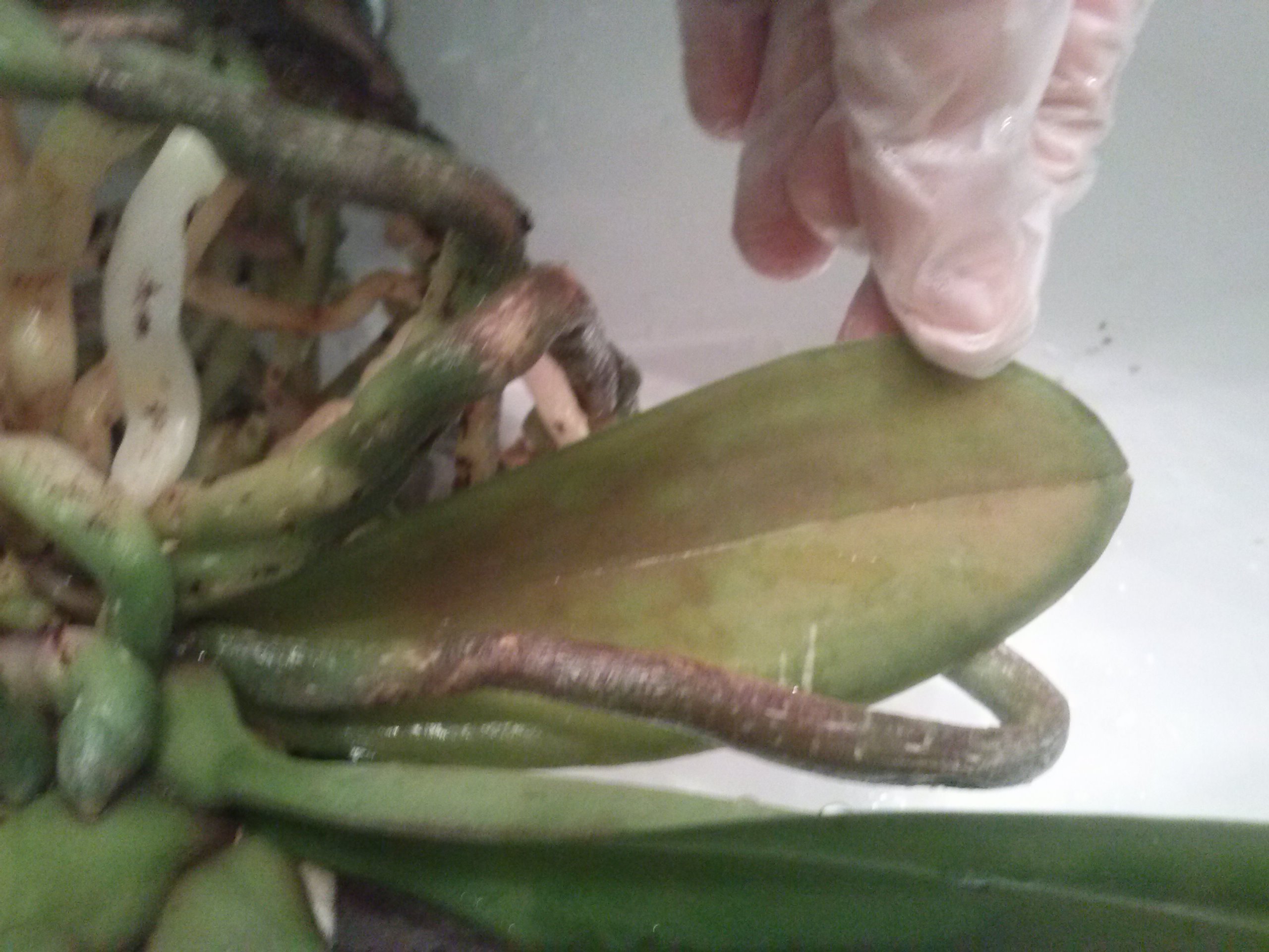Dalej nie wiem co radzić... bo ja tylko interpretuję to co widzę na zdjęciach. Nie jestem przecież pewna czy twoja roślina ma tą mokrą zgniliznę. Jeśli jednak ma, to trzeba wszystkie chore liście usunąć... bakterie rozpostrzeniają się bardzo więc trzeba zakażenie zatrzymać. Wtedy można spryskać resztę rośliny albo samym tlenkiem wodoru albo z 10-cio procentowym wywarem z wybielaczem. Osobiście używam tylko Physan i wodę utlenioną. A miejsca gdzie ucinam liście posypuję cynamonen.