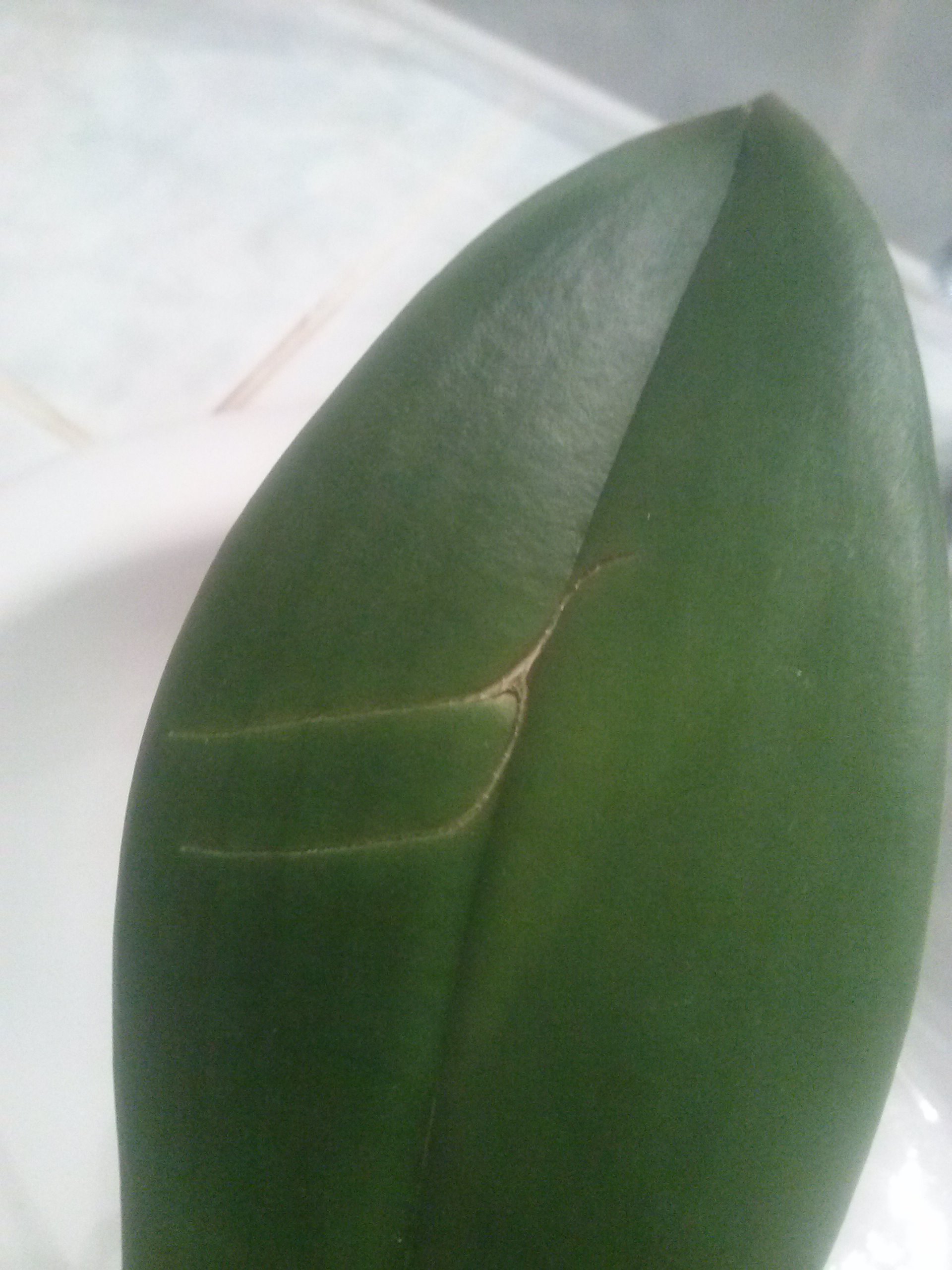 pęknięcia na 2 przeciwległych liściach.