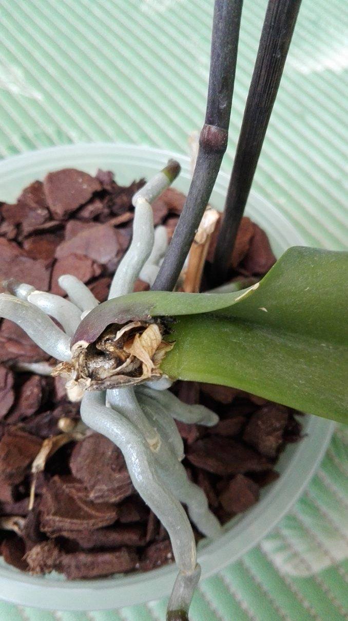 korzenie sa w bradzo dobrym stanie, co troche wypuszcza nowe. Jeden liść tak wyglada pod spodem