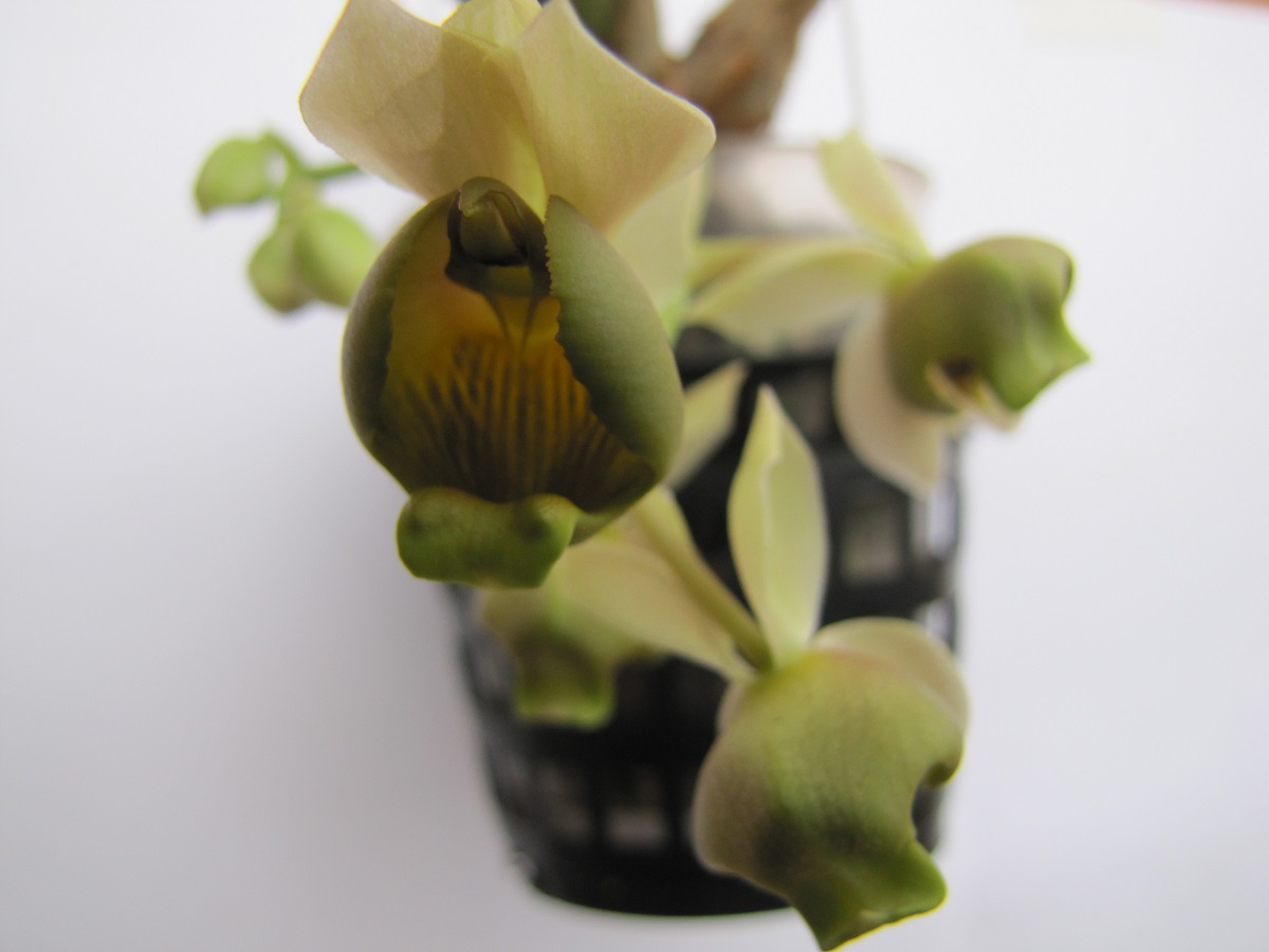 Jak w temacie, malutkie catasetum z malutkimi kwiatami, pochodzi z Brazylii, import z 2018 roku. Kwiatki nie pachną. Dość szybko się zaadaptowało do warunków domowych, mam 2 łodyżki kwiatowe. Niestety, zdjęcia z powodu braku słońca wyszły takie sobie, ale mam nadzieję, że uda mi się zrobić lepszej jakości.