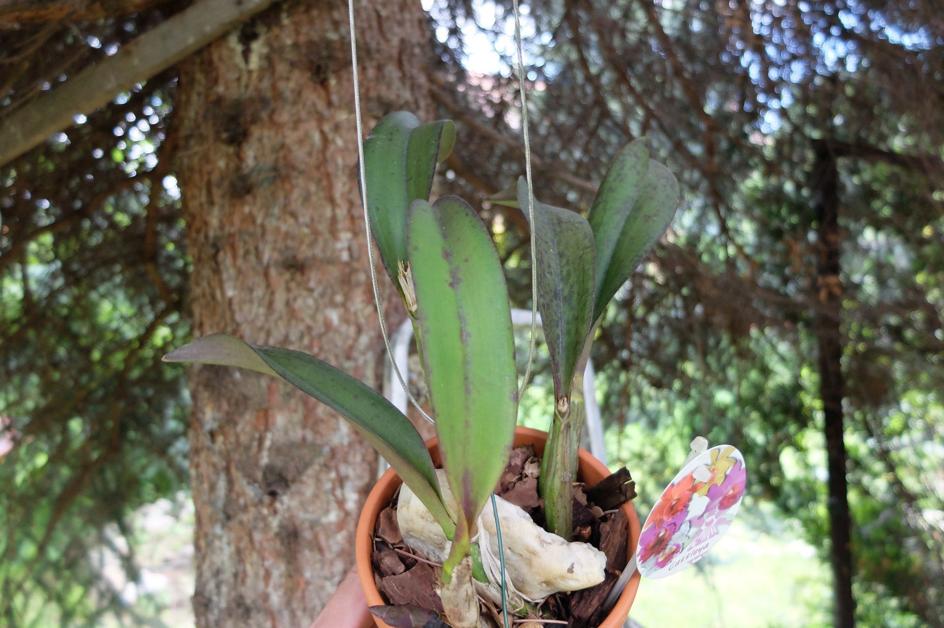 Wziąłem sobie do serca rady. Faktycznie te katleje, ze względu na tendencję do wywracania się, musiałem wkopywać po krawędź doniczki. Zawiesiłem pod gałęziami. Mam nadzieję, że im będzie lepiej. Prawie epifity ;)